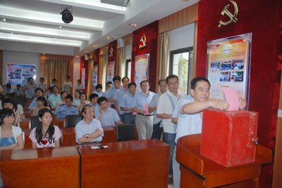 本屆黨委換屆選舉,除出國、工作調(diào)動及生病外,到會參與選舉的正式黨員共65名。經(jīng)過廣大黨員嚴肅認真的無記名選舉、投票、監(jiān)票、唱票等公平公正的選舉程序。魯小林同志高票當選本屆黨委書記。徐美珍、廖杭州、趙鵬飛、 蔣錫林當選為黨委委員。