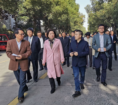 1119日,余杭區人大常委會主任阮文靜及各副主任、區總工會、區人力社保局、區應急管理局等部門20多人到東華鏈條集團指導工作。集團副總經理袁立華等領導陪同。