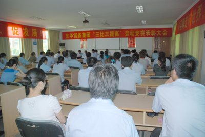 8月7日,東華集團隆重召開“三比三提高”勞動競賽表彰大會。董事長助理張世強、副總經理袁立華、財務總監趙鵬飛、工會主席魯小林及各部門負責人、各分工會主席、副主席、先進集體代表、積極分子代表、團委書記、副書記等50余人參加會議。