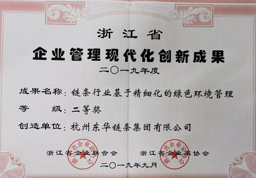 日前,杭州市企業聯合會召開換屆選舉大會,會上表彰獎勵了2019年度杭州市企業管理現代化創新成果獎,公司由管理部推薦的“鏈條行業基于精細化的綠色環境管理”榮獲杭州市企業管理現代化創新成果三等獎。該成果也被浙江省企業聯合會授予浙江省2019年企業管理現代化創新成果二等獎稱號。