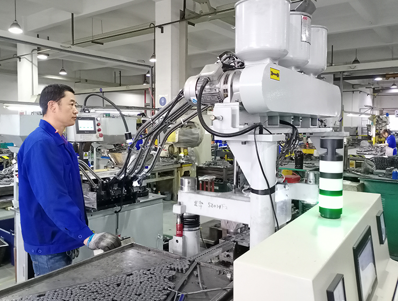 東華積極應對訂單爆發(fā)式增長,為滿足客戶交貨需求,今年一季度,公司技改設備投入已經(jīng)超過了去年全年,達到了2000多萬元。如農(nóng)機鏈事業(yè)部不斷加大技術革新,對ZGS外附板、S52外附板、A55外附板等落料壓彎一體化模具開發(fā)、投入100HHA成條機裝配設備代替人工裝配、組建CA、ZGS和A960系列裝配流水線代替原來的人工榔頭裝配,大大提升了生產(chǎn)效率,以滿足客戶的交貨需求。