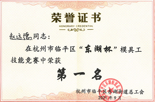 金秋送爽,丹桂飄香,在“9.26工匠日”來臨之際,公司員工趙遠德奪得臨平區“東湖杯”模具工技能競賽冠軍。