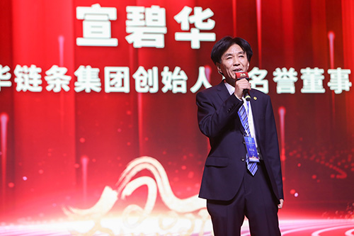 “鏈動(dòng)世界”的開(kāi)場(chǎng)舞后,集團(tuán)創(chuàng)始人、名譽(yù)董事長(zhǎng)宣碧華致辭。他說(shuō),東華三十年來(lái)從小做到大,產(chǎn)品從少做到多,從中國(guó)做到全球,從專注做到專業(yè),從耐心做成迷戀。三十年來(lái)得到員工的擁護(hù),用戶的認(rèn)可,同行的尊重。三十年中,我們穩(wěn)健經(jīng)營(yíng),專注制造業(yè),為了預(yù)防風(fēng)險(xiǎn),東華三十年中消化了冷落,扛住了壓力,遵守誠(chéng)信,擔(dān)當(dāng)責(zé)任,創(chuàng)造價(jià)值。常言道十年磨一劍。東華三十年磨三把劍,誠(chéng)信、責(zé)任、價(jià)值。今天東華還在路上,還要繼續(xù)擔(dān)當(dāng)下去。感謝各位多年來(lái)對(duì)東華的支持,也感謝今天沒(méi)有來(lái)參加這次慶典大會(huì)的東華員工以及上下游產(chǎn)業(yè)鏈的朋友,祝大家身體健康、事業(yè)有成、家庭幸福。