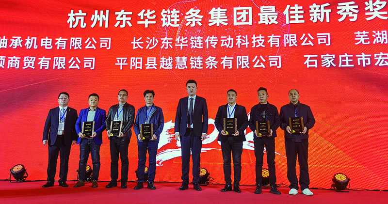 東華優(yōu)秀經(jīng)銷商代表,上海亦寶傳動鏈有限公司總經(jīng)理龔海翔和盾牌優(yōu)秀經(jīng)銷商代表,沈陽華鵬鏈條鏈輪技術(shù)開發(fā)有限公司總經(jīng)理王俊青在會上作了熱情洋溢的發(fā)言。