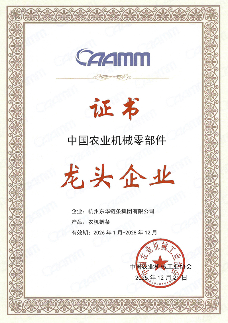 中國(guó)農(nóng)業(yè)機(jī)械零部件龍頭企業(yè)是國(guó)內(nèi)農(nóng)機(jī)零部件領(lǐng)域極具權(quán)威性的行業(yè)榮譽(yù)。東華鏈條自2016年以來(lái),已連續(xù)多年獲此殊榮,彰顯了企業(yè)在農(nóng)機(jī)傳動(dòng)領(lǐng)域的持續(xù)領(lǐng)先地位。