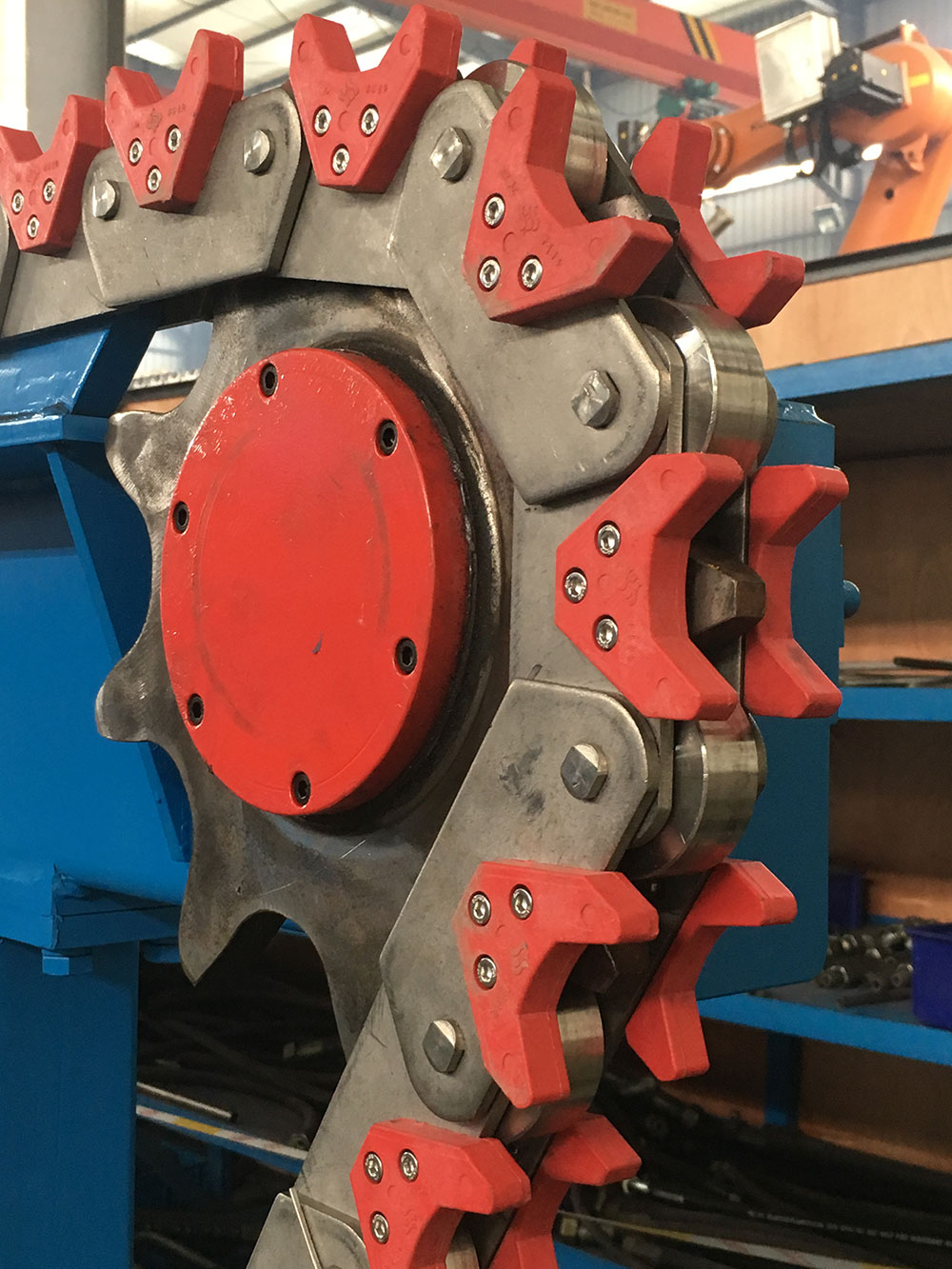 鋼卷輸送鏈條、鋼管生產線鏈條等鋼廠用輸送鏈;陰極銅輸送鏈等。