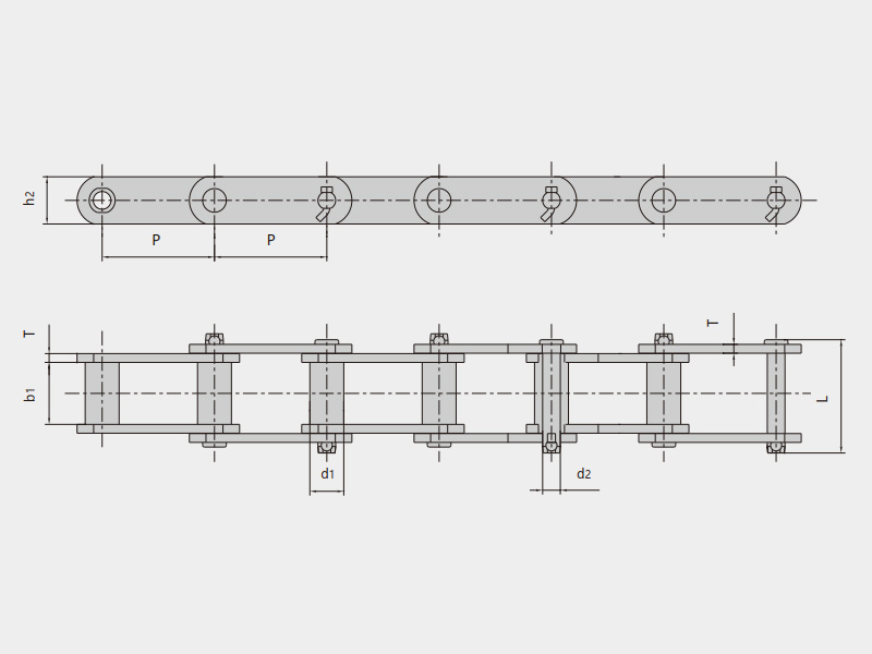 ● 工程用鋼制套筒鏈主要按ASME B29.12M《鋼制套筒(無(wú)滾子)鏈、附件和鏈輪齒形》、JB/T 5398《鋼制套筒鏈、附件及鏈輪》、JB/T 3926《垂直斗式提升機(jī)》等標(biāo)準(zhǔn)進(jìn)行設(shè)計(jì)和制造,也可以按照用戶需求進(jìn)行定制開(kāi)發(fā)。