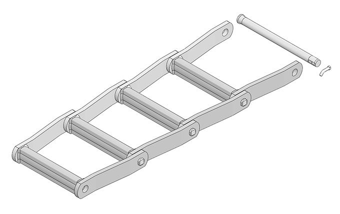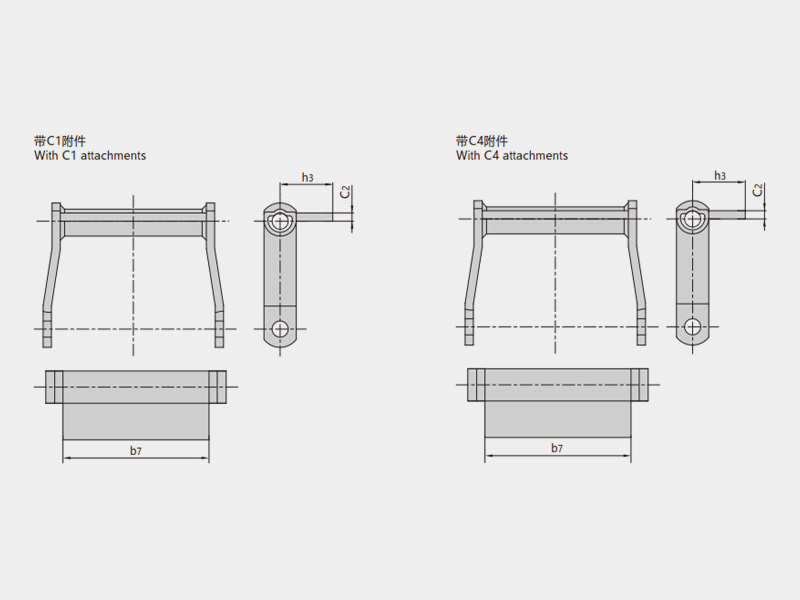 ● 曳引用焊接結構彎板鏈按ASME B29.18M《鋼制焊接曳引鏈、附件和鏈輪齒形》和ISO 6971《焊接結構彎板曳引鏈、附件及鏈輪》標準,有多種附件可供選擇,也可以按照用戶需求進行定制開發。